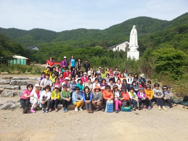 인천, 서운동성당 꾸리아 99명(김성수 스테파노 보좌신부), 천진암 성지 순례, 낮 12시 순례객 미사 후, 세계평화의 성모상 앞에서 단체기념사진(2014.05.20)