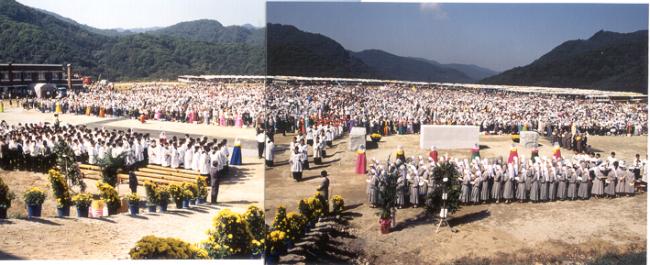 1993년 9월 26일 오전 11시, 한국천주교발상지 천진암성지에서 한민족 100년계획 천진암대성당 건립 정초식 행사시 동쪽 제단에서 본 광경.