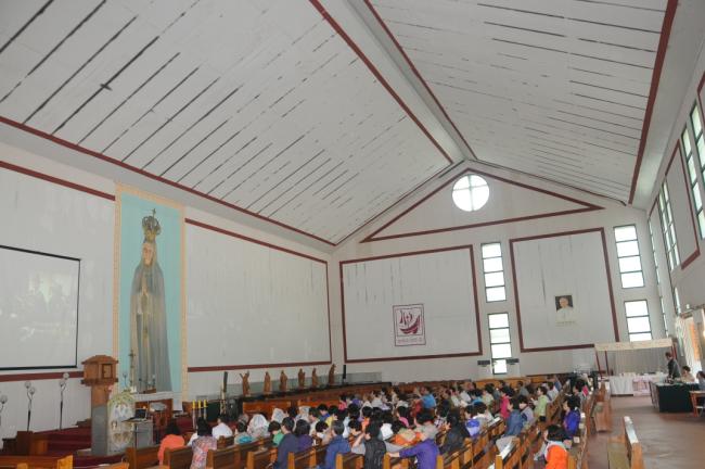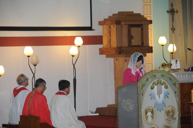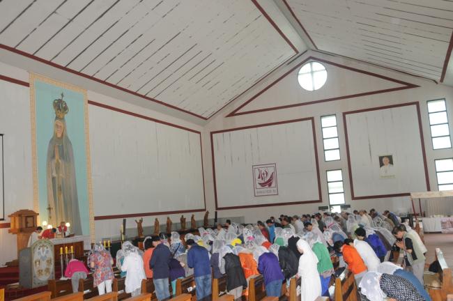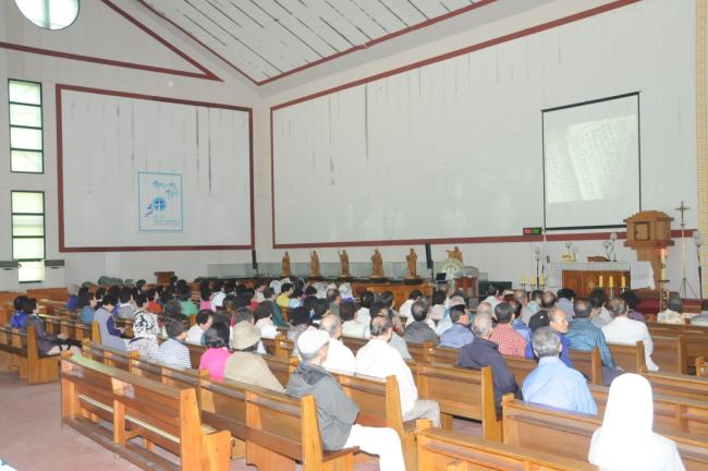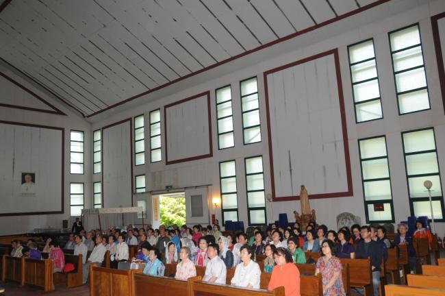 대구, 대봉성당 노인성경대학 82명, 청주 용암동성당(이명재 라파엘 신부) 반구역장 25명, 수원, 순교영성강학팀46명(수원교구 시복시성추진위원회 총무 겸 오전동 성당 주임 김동원 신부) 외, 천진암 성지순례, 낮 12시 순례객 미사(2014.05.27)
