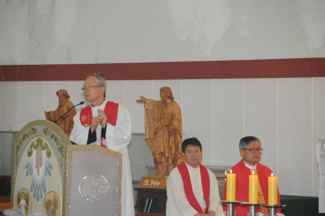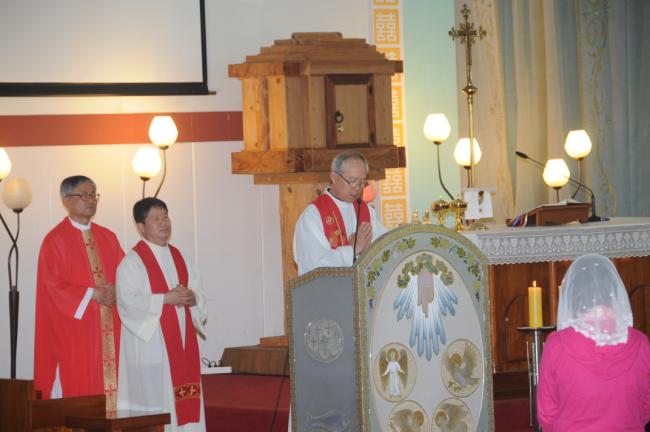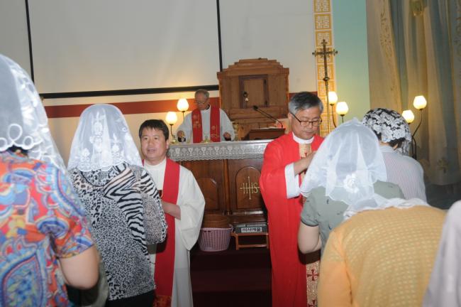 대구, 대봉동성당 90명, 청주 용암동성당(이명재 라파엘 신부) 반구역장 30명, 수원, 대구, 대봉성당 노인성경대학 82명, 청주 용암동성당(이명재 라파엘 신부) 반구역장 25명, 수원, 순교영성강학팀46명(수원교구 시복시성추진위원회 총무 겸 오전동 성당 주임 김동원 신부) 외, 천진암 성지순례, 낮 12시 순례객 미사(2014.05.27)