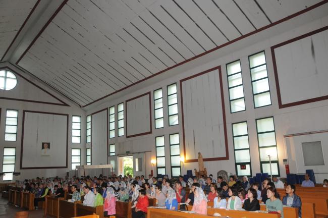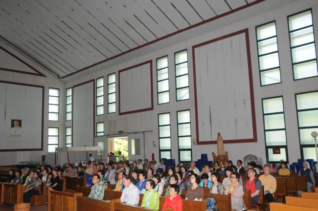 청주, 서경성당 40명, 충남 당진성당 33명, 서울 하계동성당 20명, 수원 동수원성당 11명, 용인 죽전1동성당 14명(2014.05.31) 외, 천진암 성지순례, 낮 12시 순례객 미사