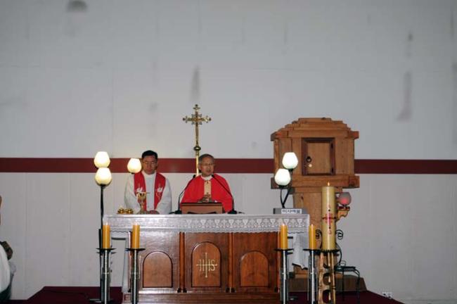08.04.27(일), 12시 순례객 주일 미사(인천, 선학동성당 버스8대 320명, 성남 마태오성당, 전주 하대성당 등)