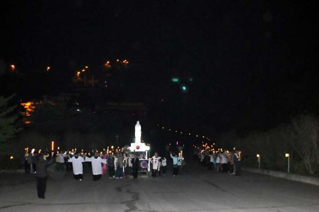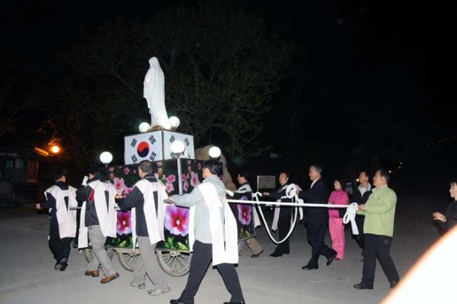 천진암성지의 제122회 월례 촛불기도회 후 성모상 제위치로 이동중(08.05.03, 토)