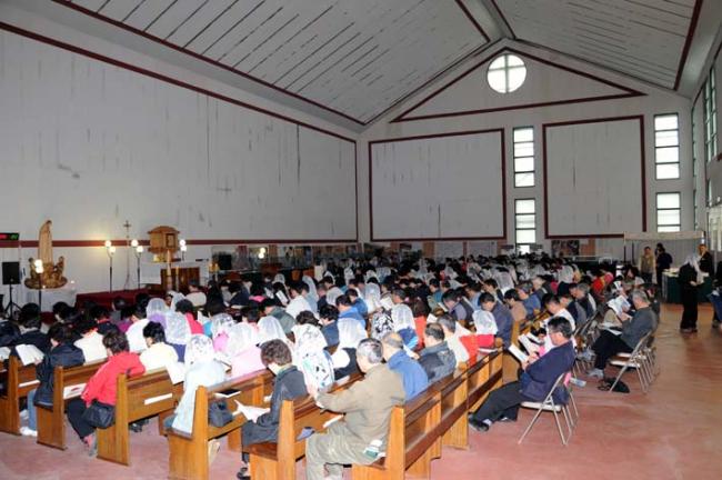 08.04.27(일), 12시 순례객 주일 미사(인천, 선학동성당 버스8대 320명, 성남 마태오성당, 전주 하대성당 등)