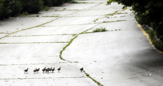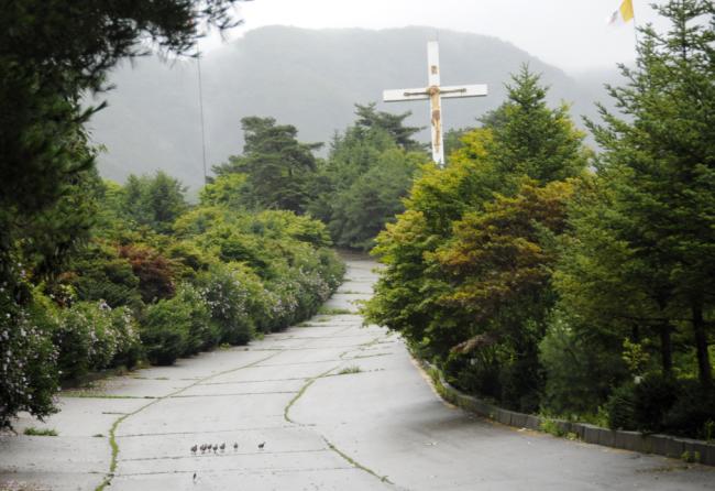 오리가족들이 이른아침부터 천진암 성지를 순례하기 위해 성역로를 오르고 있다(2014.07.26, 오전 7시 37분)