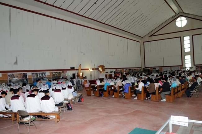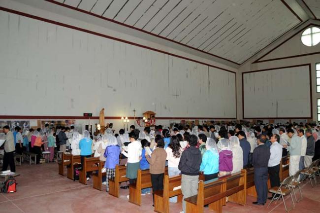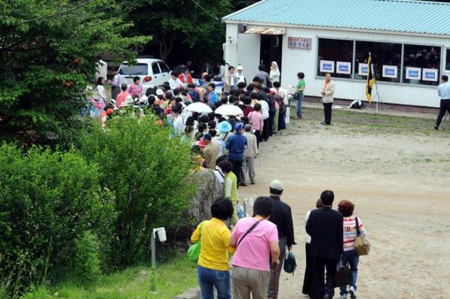 대구삼덕성당 신자들이 미사 후 점심식사를 하기 위해 차례를 기다리고 있는 모습(08.06.06)