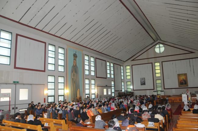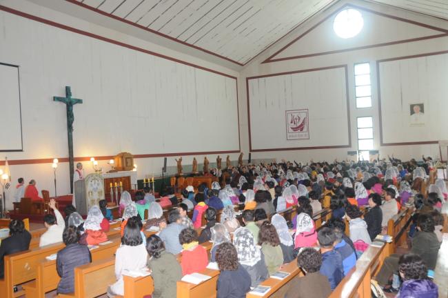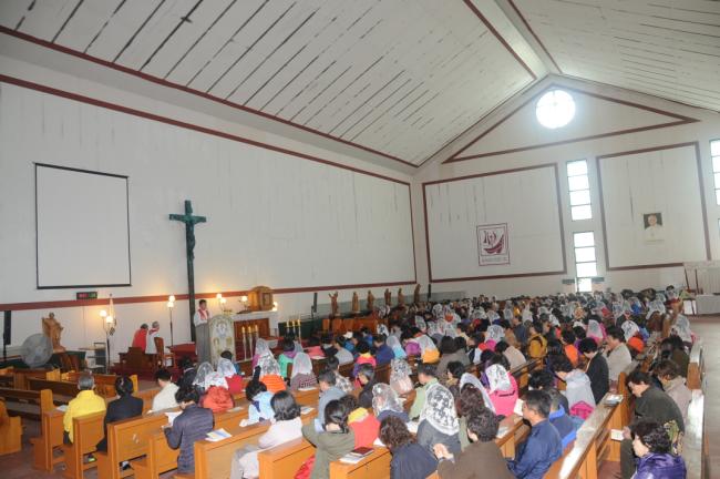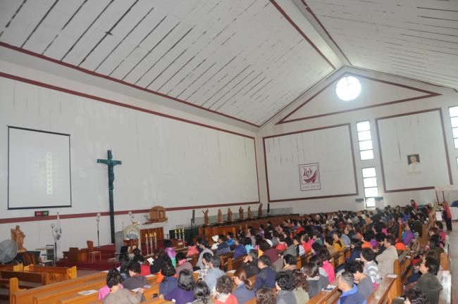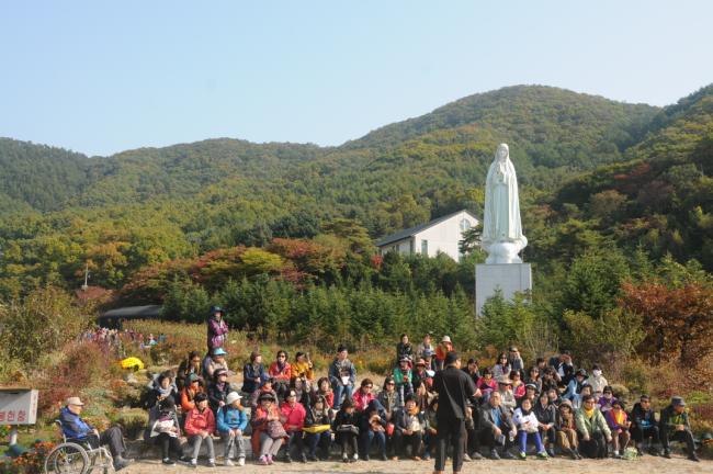홍콩신자 40명, 서울 태릉성당 성서모임67명, 서울 명일동 성당 30명, 수원 안산성요셉성당(조규식 신부), 수원교구 레지아 팀 외, 천진암 성지 순례, 낮 12시 순례객미사(2014.10.18)