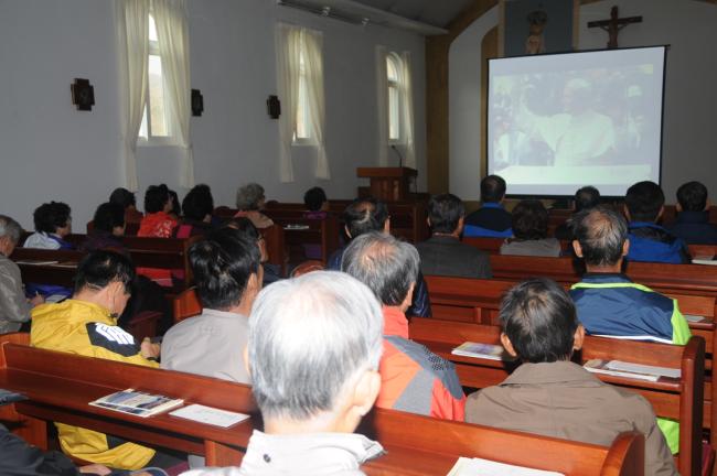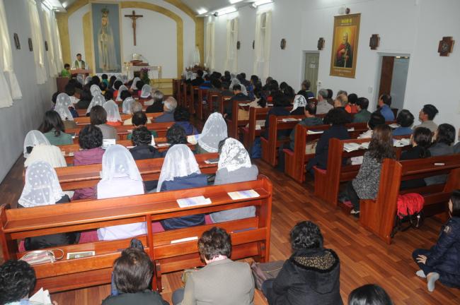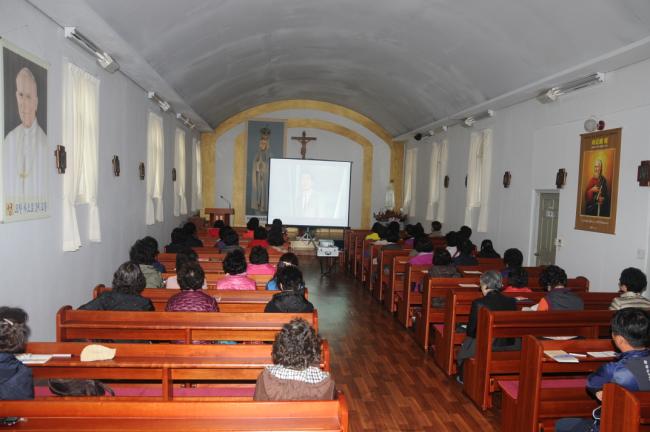 청주, 봉방동성당 40명, 서울, 반포4동성당(장경근 신부) 수험생자모회 48명, 천진암성지순례, 낮 12시 순례객 미사(2014.10.30)