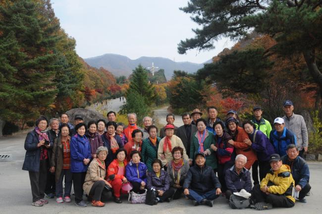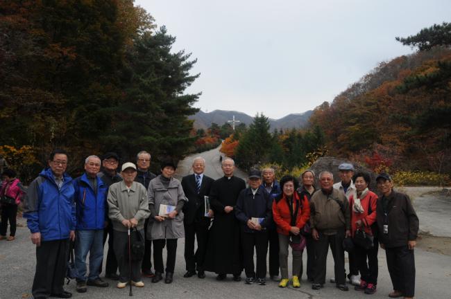 수원 하안성당 15명, 천진암성지순례, 낮 12시 순례객 미사 후, 단체 기념 사진(2014.10.30)