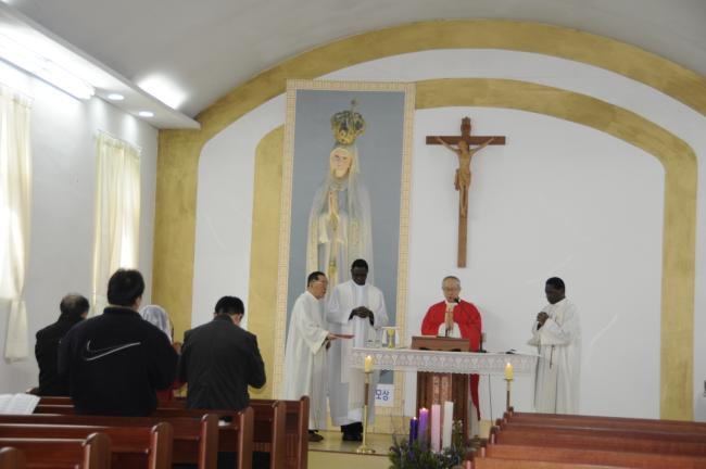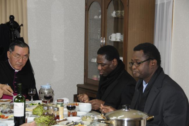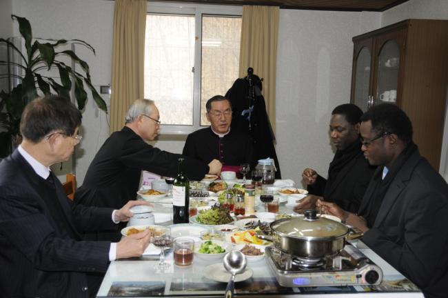 교황대사관, 카보레 참사관 몬시뇰, 친구 가롤로 신부, 첼시오 김과장 천진암성지 순례, 낮12시 미사후, 한국천주교회창립사연구원에서 점심식사(2014.12.12)