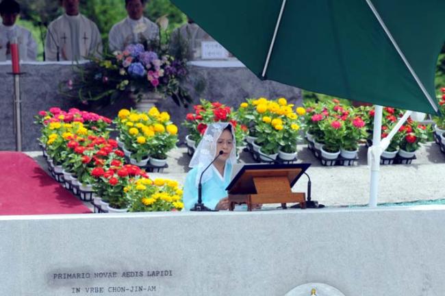 한국천주교회창립기념제229주년(30회)기념행사시 서울여자 천진회 신혜선 회장의 봉헌지향 말씀(신학생170명, 사제단 17명, 신자 수 2,500여명 참석)08.06.24.화