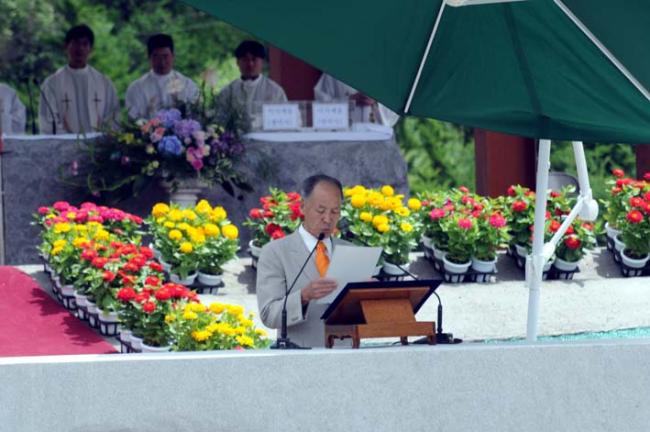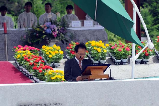 한국천주교회창립기념제229주년(30회)기념행사시 경기도 표철수 부지사의 경축사(신학생170명, 사제단 17명, 신자 수 2,500여명 참석)08.06.24.화