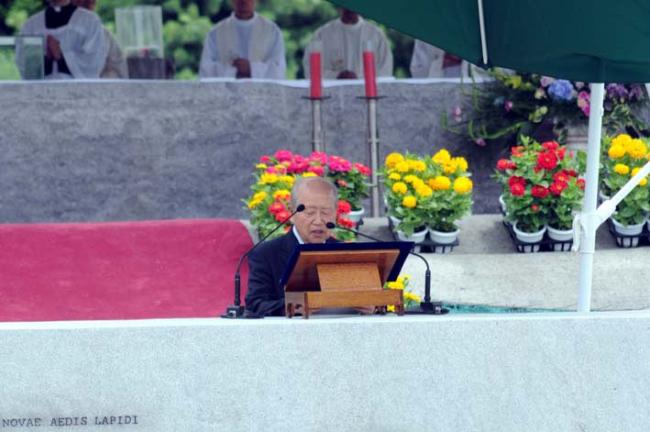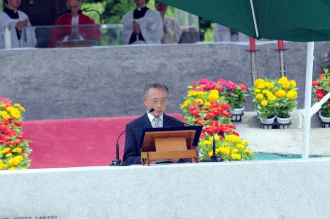 한국천주교회창립기념제229주년(30회)기념행사시 신자들의 기도를 하는 김진용 회장(신학생170명, 사제단 17명, 신자 수 2,500여명 참석)08.06.24.화