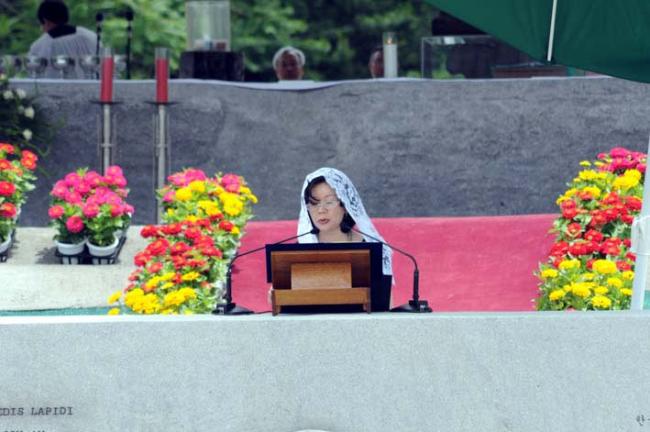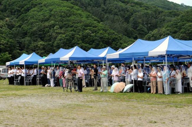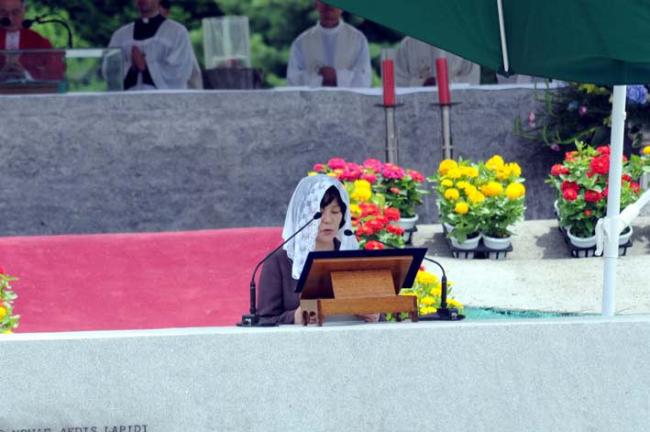 한국천주교회창립기념제229주년(30회)기념행사시 신자들의 기도를 하는 이로사 자매(신학생170명, 사제단 17명, 신자 수 2,500여명 참석)08.06.24.화