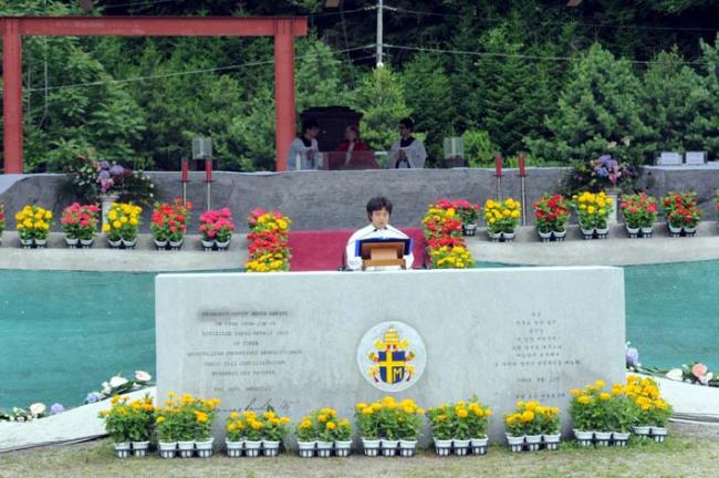 한국천주교회창립기념제229주년(30회)기념행사시 능평본당 윤민렬 신부님의 복음 봉독(신학생170명, 사제단 17명, 신자 수 2,500여명 참석)08.06.24.화