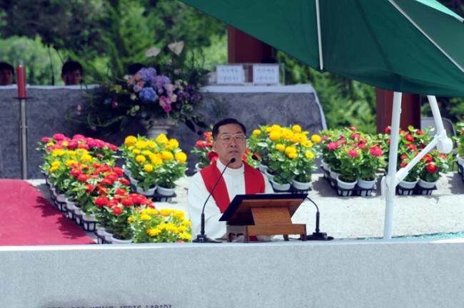 한국천주교회창립기념제229주년(30회)기념행사시 천진암 성지 담당이신 변기영 몬시뇰의 강론(신학생170명, 사제단 17명, 신자 수 2,500여명 참석)08.06.24.화