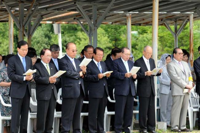 한국천주교회창립기념제229주년(30회)기념행사시 신자들의 기도를 하는 안병기 회장(신학생170명, 사제단 17명, 신자 수 2,500여명 참석)08.06.24.화