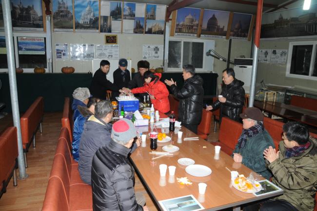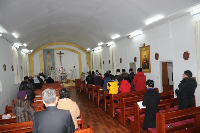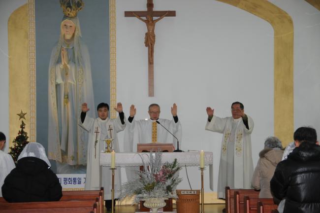 새해맞이 기도와 애국가 4절까지 봉창, 천진암가 합창 후, 강복(2014.12.31)