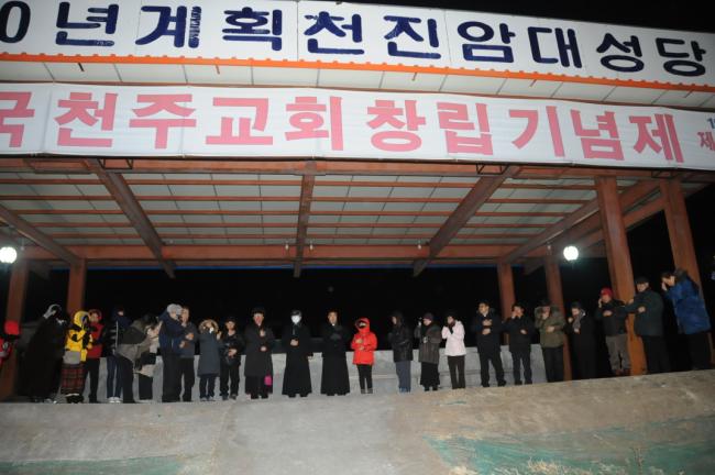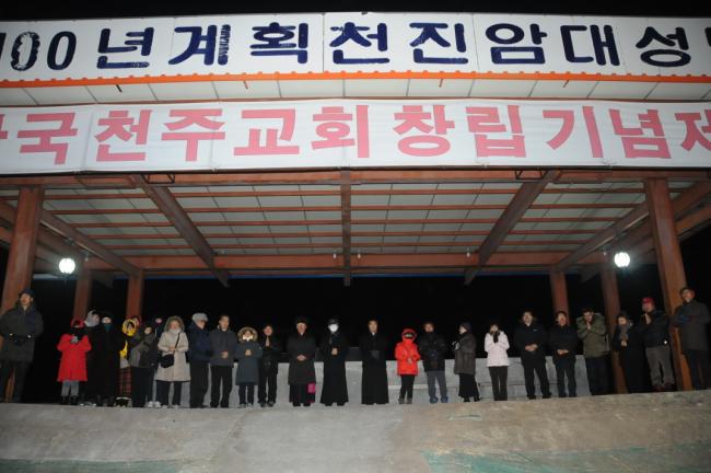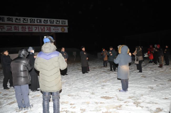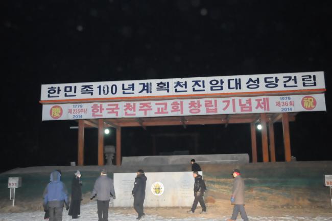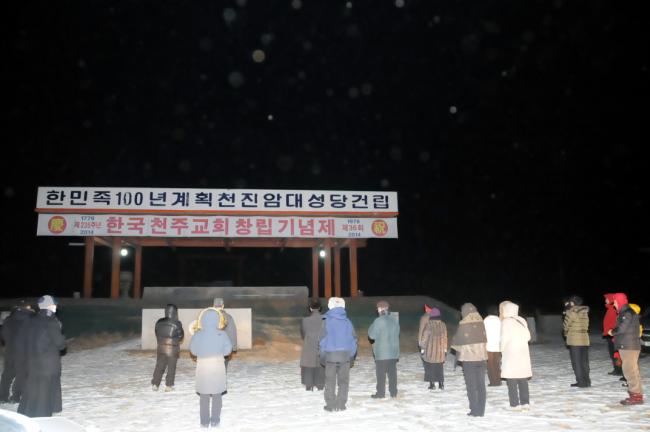 새해맞이 기도를 하기 위해 천진암대성당터로 모이고 있는 모습(2014.12.31)