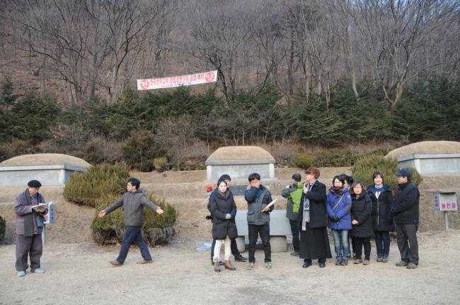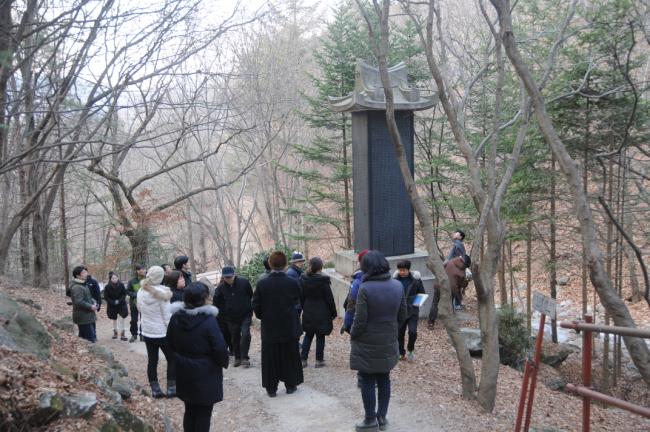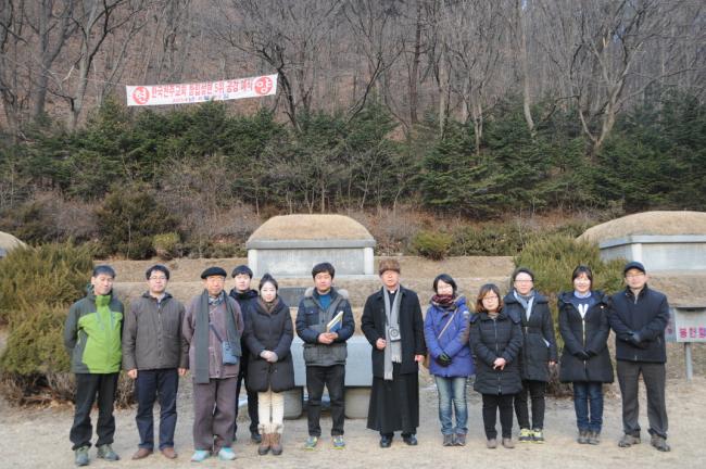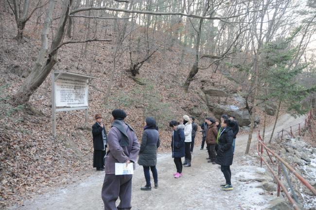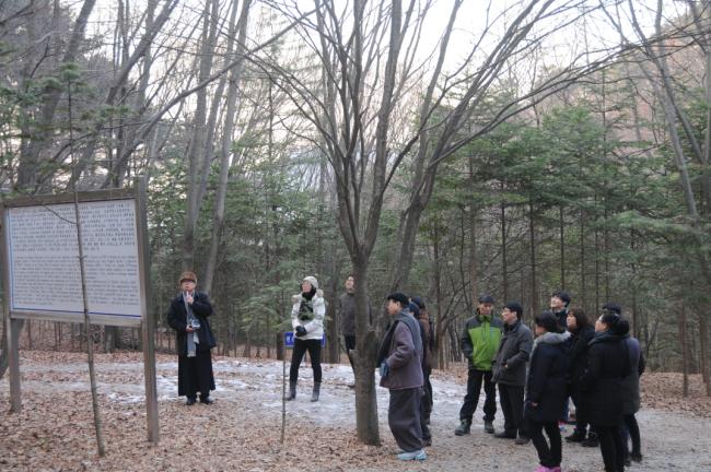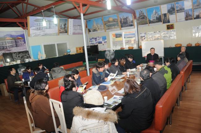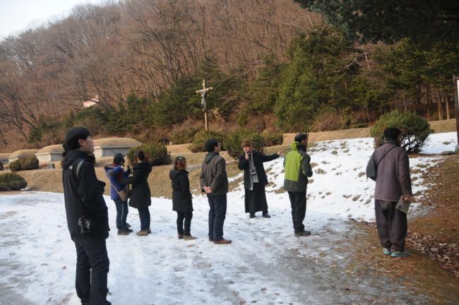 동국대학교 교수 2명, 국문학과 대학원생21명, 천진암 성지 순례시 변기영 몬시뇰과 주임 김학렬 신부의 설명(2015.02.03)