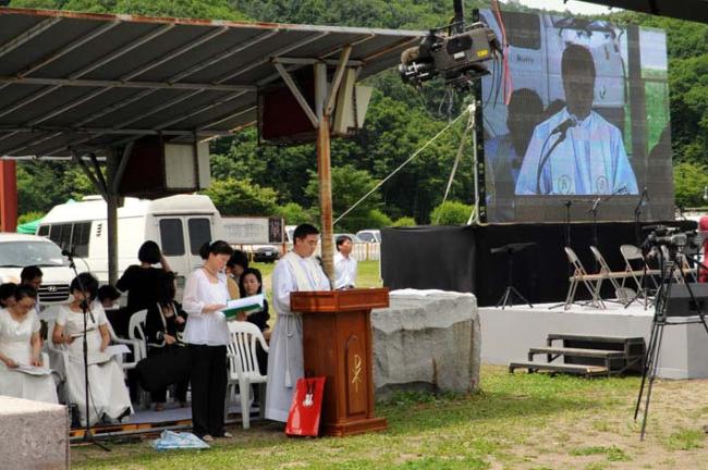 한국천주교회창립기념제229주년(30회)기념행사시, 미사해설을 담당한 이그레고리오 신부님(양성성당 주임)(신학생170명, 사제단 17명, 신자 수 2,500여명 참석)08.06.24.화