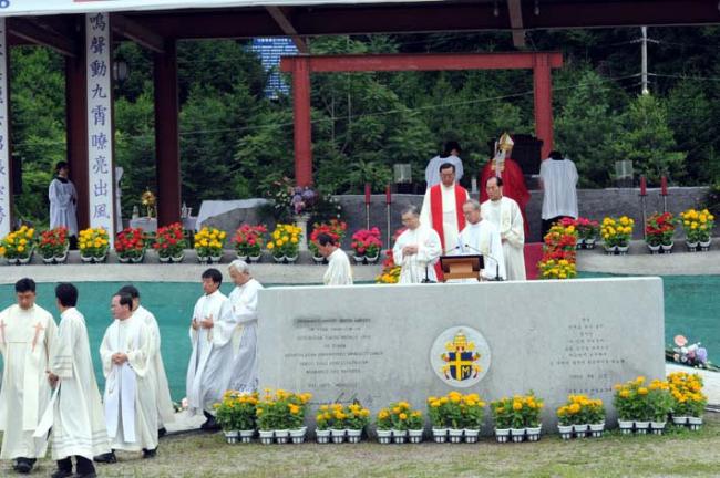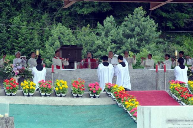 한국천주교회창립기념제229주년(30회)기념행사시, 제대의 주례단(양성성당 주임)(신학생170명, 사제단 17명, 신자 수 2,500여명 참석)08.06.24.화