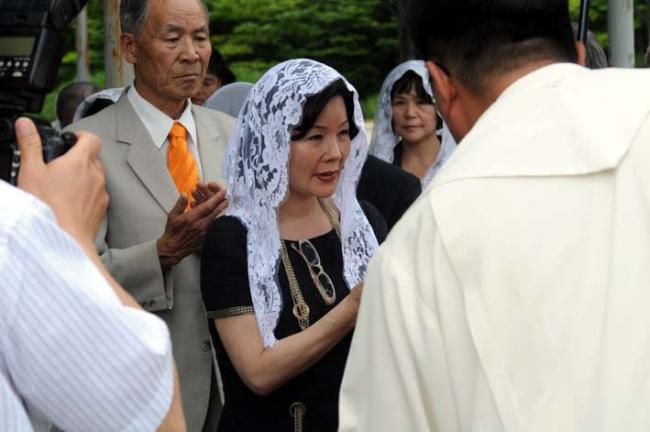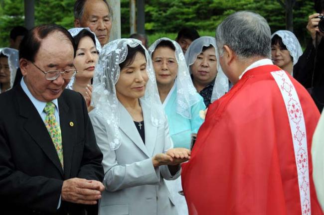 한국천주교회창립기념제229주년(30회)기념행사시 영성체를 영하는 설난영 여사(김문수 경기도지사의 부인)(신학생170명, 사제단 17명, 신자 수 2,500여명 참석)08.06.24.화