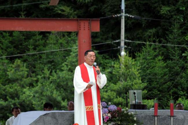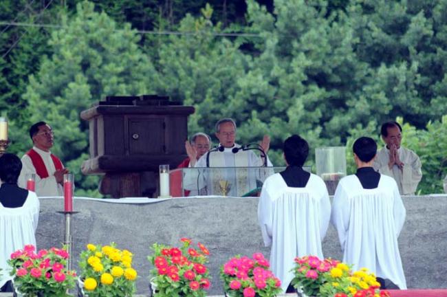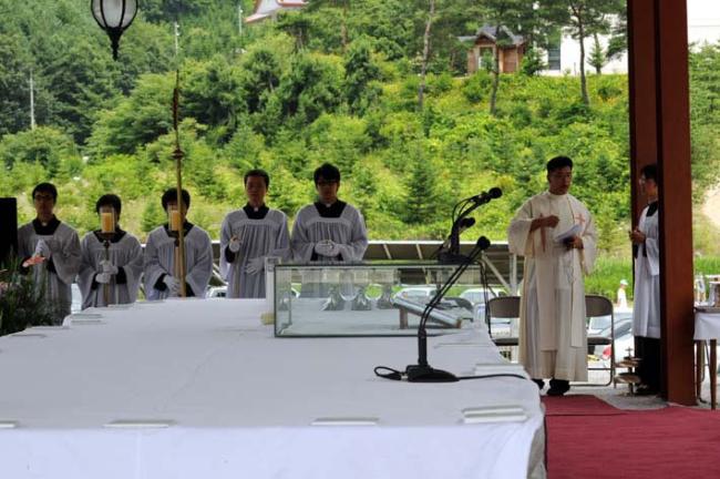 한국천주교회창립기념제229주년(30회)기념행사시 성찬의 전례시 용인 대리구의 김학렬 대리구장 신부님(신학생170명, 사제단 17명, 신자 수 2,500여명 참석)08.06.24.화