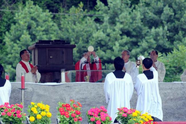 한국천주교회창립기념제229주년(30회)기념행사시 성찬의 전례(신학생170명, 사제단 17명, 신자 수 2,500여명 참석)08.06.24.화