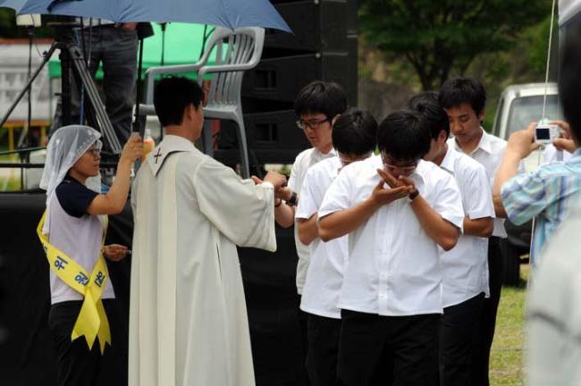 한국천주교회창립기념제229주년(30회)기념행사시 영성체를 영하는 신학생들(신학생170명, 사제단 17명, 신자 수 2,500여명 참석)08.06.24.화
