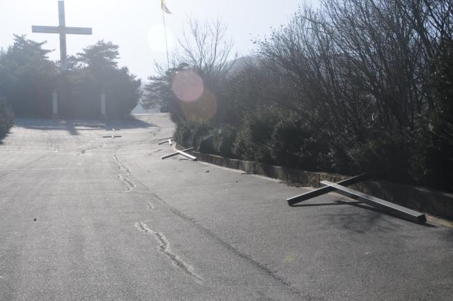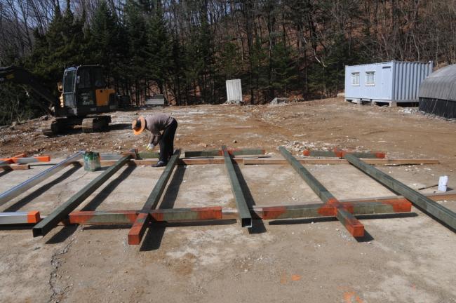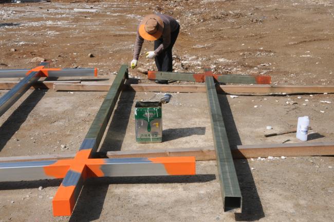 천진암성지 성역로에 14처 설치 공사시, 14처 제작 광명단 페인트 칠 후, 초벌 페인트 칠(2015.03.19)