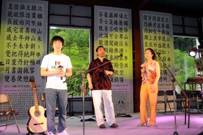6월 24일 한국천주교회창립제229주년기념제 행사 준비중인, 천진암박물관 리셉션 현장에서 리허설 중(08.06.23, 왼쪽에 이승훈성현 8대 후손인 TBNY 멤버인 준모씨와 주세페김, 김구미 팝페라 가수 부부)