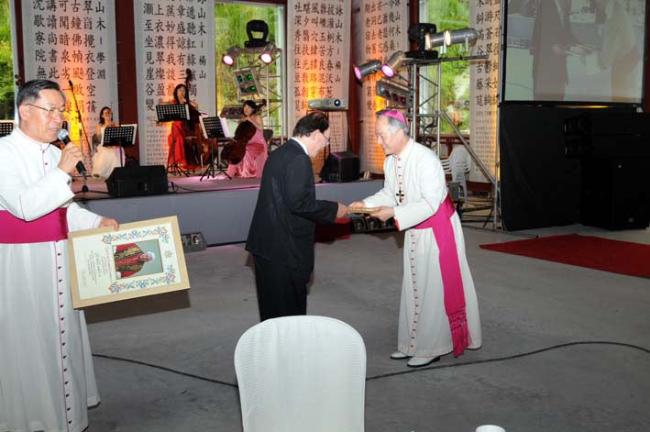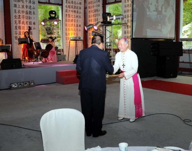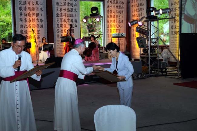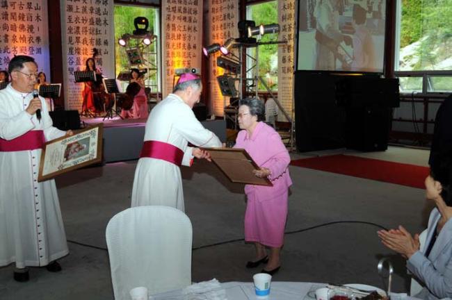 한국천주교회창립기념제229주년(30회)기념행사시, 천진암박물관 외부공사 완공과 다산 정약용 선생의 시문전 전시와 내빈 식사 중에 강복장 전달(설난영 여사(김문수 경기도지사 부인)(신학생170명, 사제단 17명, 신자 수 2,500여명 참석)08.06.24.화