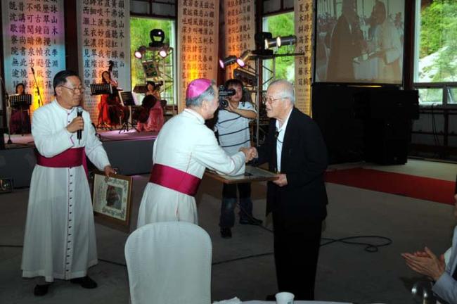 한국천주교회창립기념제229주년(30회)기념행사시, 천진암박물관 외부공사 완공과 다산 정약용 선생의 시문전 전시와 내빈 식사 중에 강복장 전달(강영훈 위원장)(신학생170명, 사제단 17명, 신자 수 2,500여명 참석)08.06.24.화