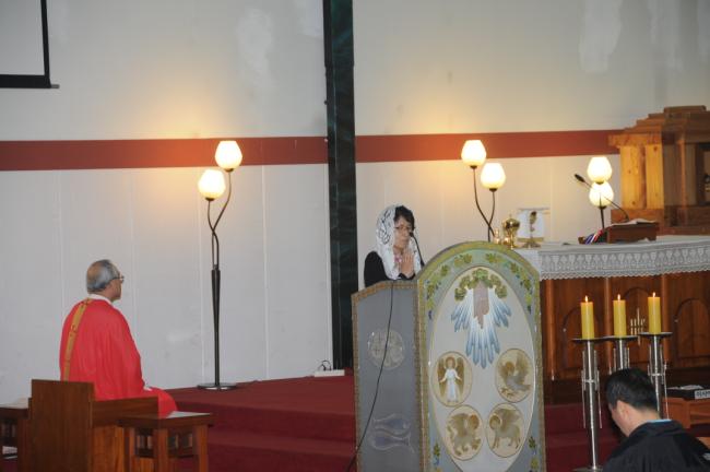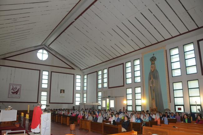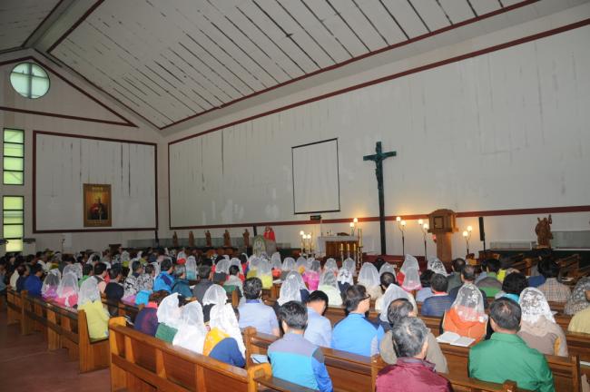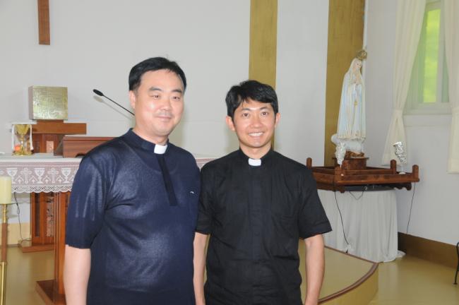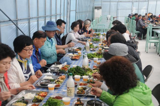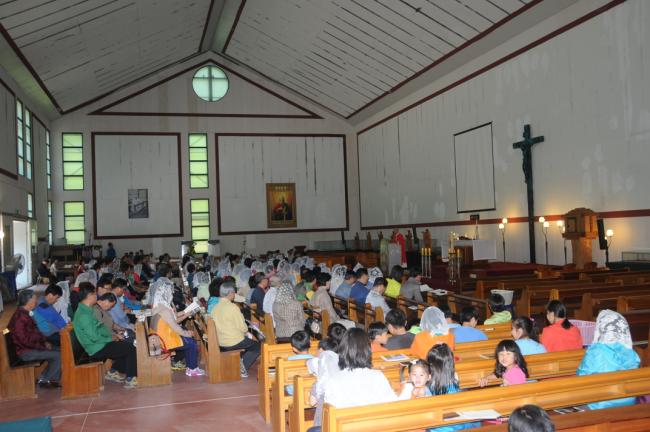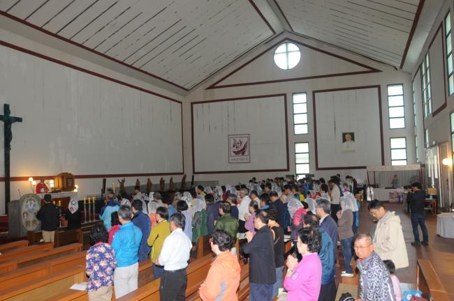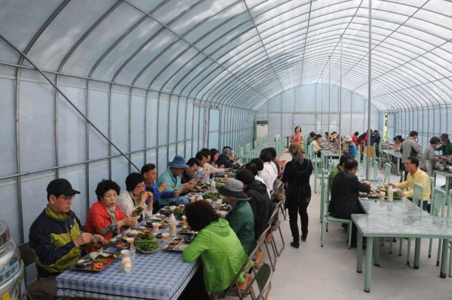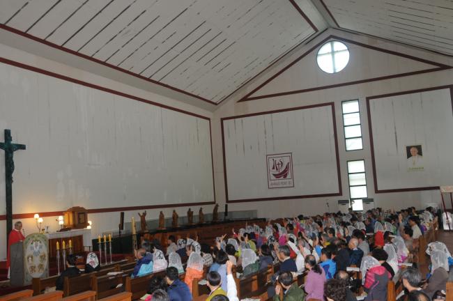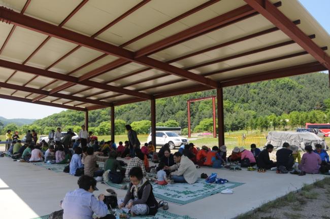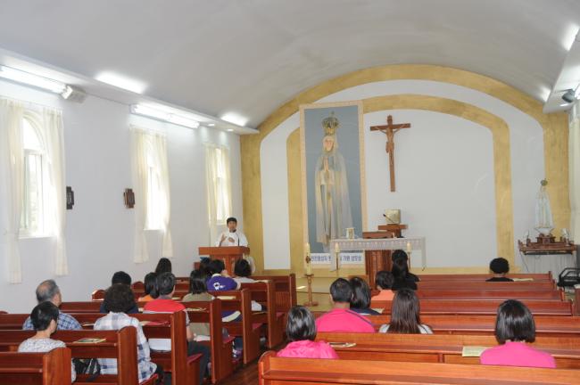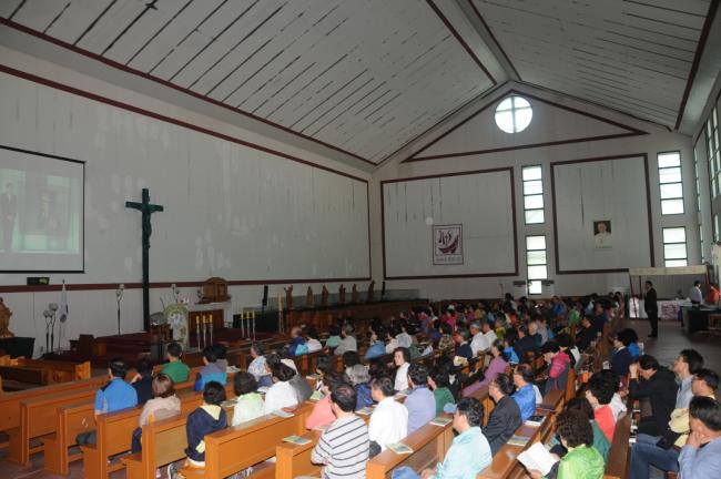 수원, 초월성당 레지오 80명(견덕호 신부), 수원 아미동 성당 45명, 용인 천리요셉주일학교 26명, 수원 동천성당 성가대 23명, 12시 순례객 미사 후 점심식사(2015.05.16)