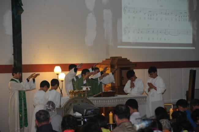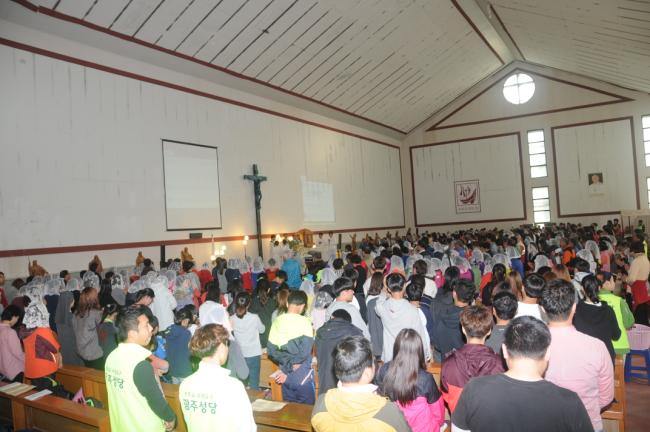 수원 광주성당 전신자 780명(김길민 신부), 도보 천진암성지순례(2015.10.25, 주일, 오전9시 광주성당 출발 오후4시 천진암성지 도착, 성모경당에서 미사), 이주민 신자들 성가연습