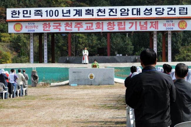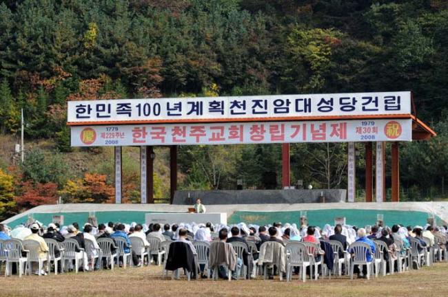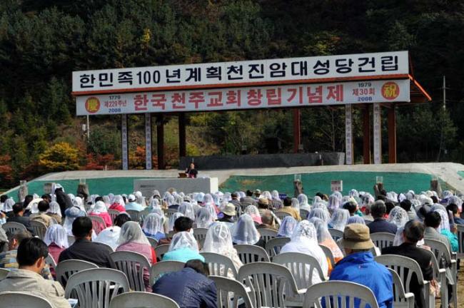 전 세계 모든 나라의 천주교회가 대부분 다른 나라 선교사들의 전도로 시작되었으나, 우리나라 천주교회는 1779년에 이벽, 권일신, 정약종, 권철신, 이승훈 등 당시 저명한 학자들에 의해서 시작되었으니, 학문적 지식의 수준에 있던 천학(天學)을 천진암에서 자발적인 진리탐구를 위한 6,7년간의 강학회(講學會)를 통하여 종교적인 신앙의 차원인 천주교회로 승화, 발전시켰으며, 그 현장이 바로 천진암 성지이다. 어느 나라에도 자기네 나라 천주교 발상지는 없으니, 천진암 성지는 한국 천주교회에만 있는 자랑스럽고 거룩한 성지이다.여기에 소개되는 사진들은 천진암 성지 직원들, 주로 허관순 세라피나 편찬실장이 찍어서 올린 것입니다. |
