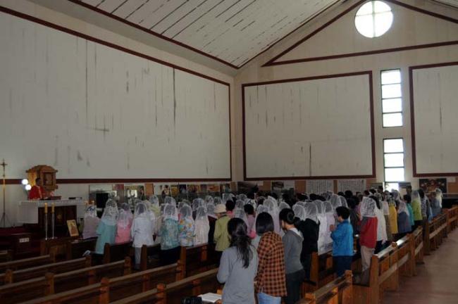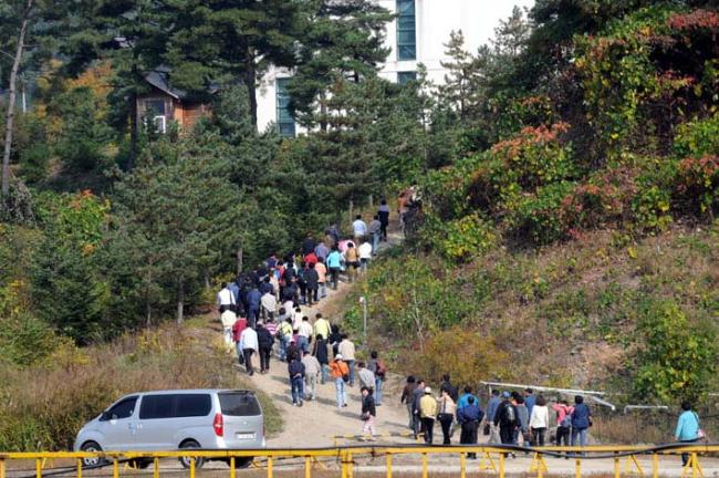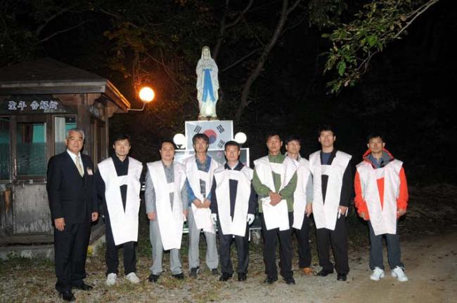 청주 사천동 성당100명이 성모경당을 향해 올라가고 있다(08.10.19)