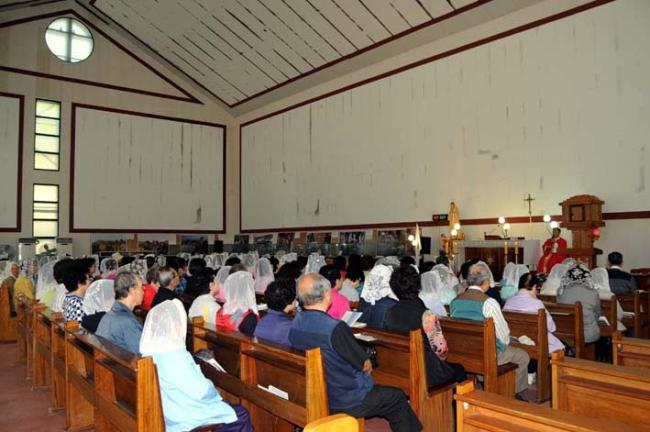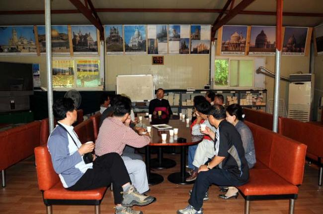 경북 영천성당 배준빈 보좌 신부님 외 356명, 청주 사천동 100명, 수원 오전동성당 90명, 전주 숲정이 성당 30명외(08.10.19. 일, 미사 전에 변기영 몬시뇰께서 강의를 하고 있는 모습)