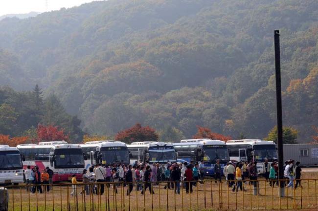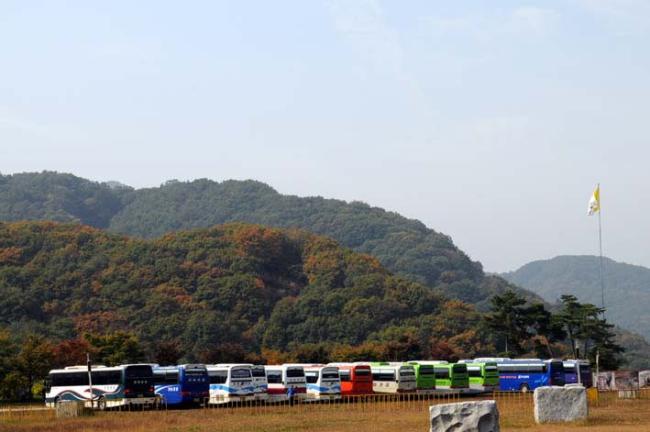 경북 영천성당 배준빈 보좌 신부님 외 356명이 도착해서 버스에서 내리고 있다(08.10.19. 일)