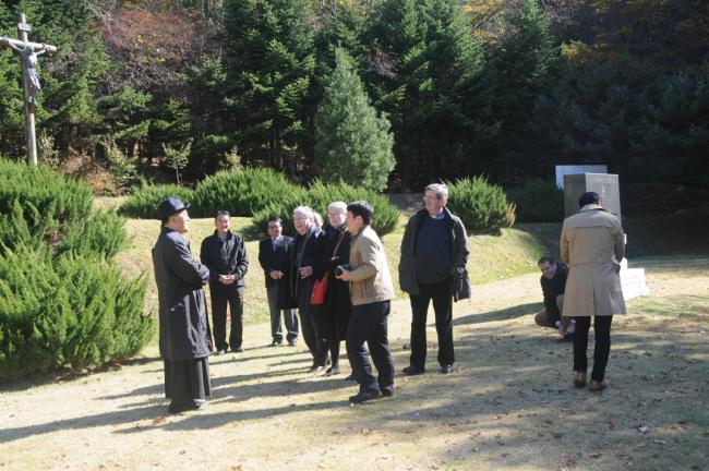 죠셉 도레 대주교(J. Doré, 스트라스부르크 명예 대주교), 앙리 제롬 가제 신부(H.-J. Gagey, 파리가톨릭대학교 교수), 프랑스와 모그 교수(F. Moog, 파리가톨릭대학교 교육대학원장), 쥬느비에브 메드비엘 수녀(G. Medevelelle, 파리가톨릭대학교 명예교수), 조엘 몰리나리오 교수(J. Molinario, 파리가톨릭대학교 교리교육학 부장일행이 수원가톨릭대학교수 한민택 신부님의 안내로, 20151030, 오전 11~오후 2시까지, 변기영 몬시뇰의 현장안내 설명(한민택 신부 통역)을 들으며, 천진암 성지를 순례하였다.
