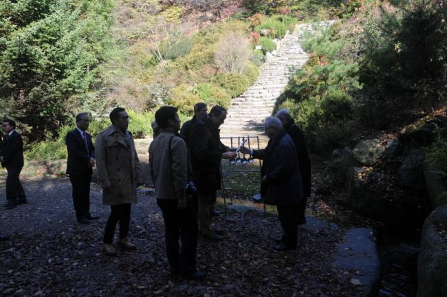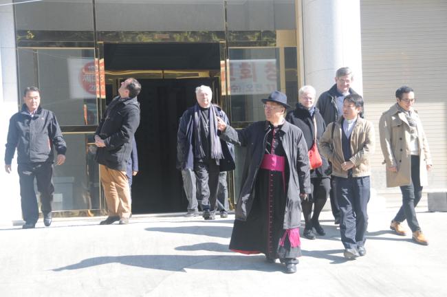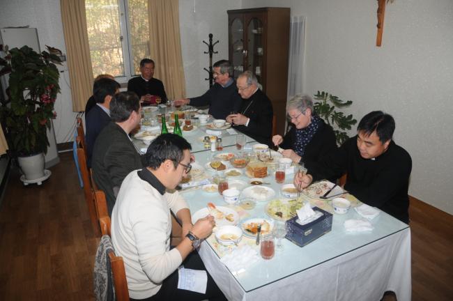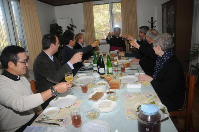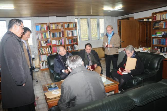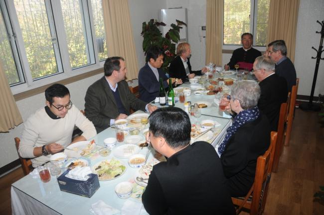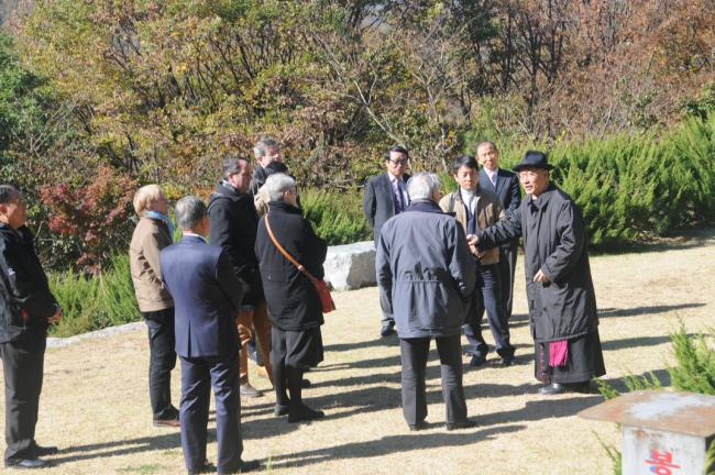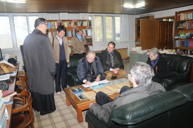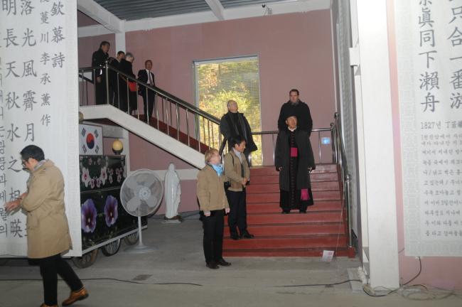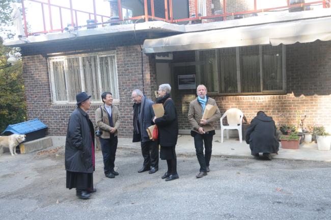 죠셉 도레 대주교(J. Doré, 스트라스부르크 명예 대주교),앙리 –제롬 가제 신부(H.-J. Gagey, 파리가톨릭대학교 교수),프랑스와 모그 교수(F. Moog, 파리가톨릭대학교 교육대학원장),쥬느비에브 메드비엘 수녀(G. Medevelelle, 파리가톨릭대학교 명예교수),조엘 몰리나리오 교수(J. Molinario, 파리가톨릭대학교 교리교육학부장) 일행, 천진암성지순례(2015.10.30)