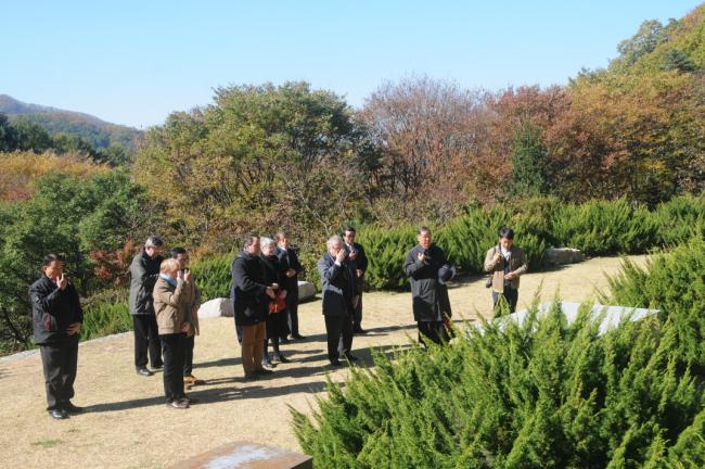 일행은 천진암 터에 모셔진  하느님의 종, 이벽, 권일신, 이승훈, 권철신, 복자 정약종, 5위 묘 참배와, 후손대표들(이상균 회장, 이승훈 순교자 7대직계 후손), 이재형(이벽 성조 문중 8대 후손), 정해만(정약종 7대 후손)도 만나는 감격을 체험하며, 한민족100년계뢱 천진암대성당 건립현장, 교황 성요한바오로2세의 강복문 머릿돌과 제대석, 성모성당, 천진암박물관, 한국천주교회창립사연구원, 등을  순방하고 나서, 간결한 점심을 하였다.