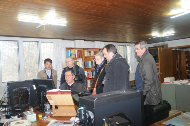 한국천주교회창립사연구원의 변기영 몬시뇰 집무실에서 8개국어로 나오는 홈페이지에 들어가서 매일 각국어 방문자(평균5000여명~13000여명)를 들어가 보고 놀라고나서,,, 대주교님 일행에게 방문 표시로 기념 메달을 받으시고,,,
