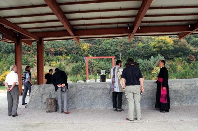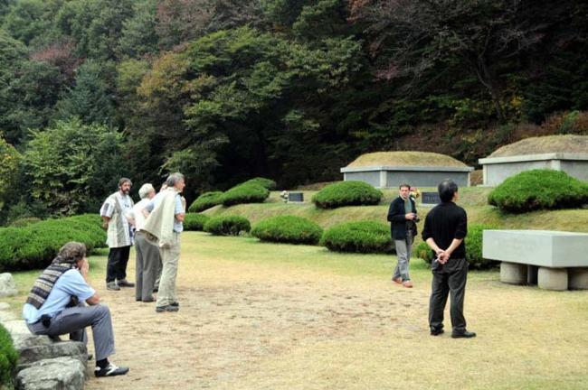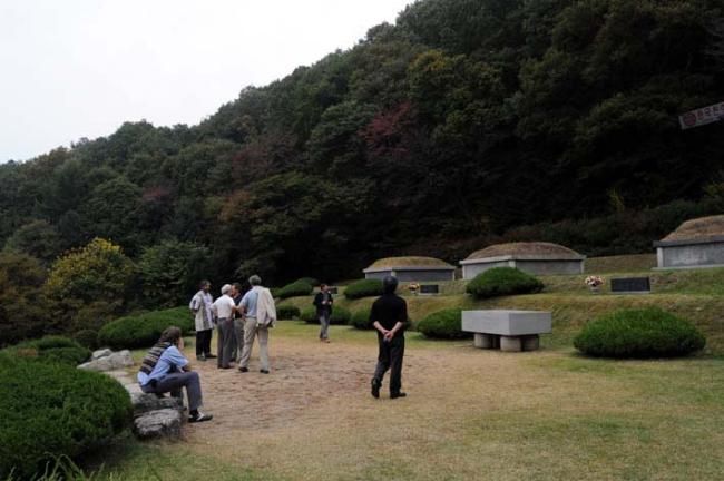 5위 성현 묘역참배 전 강학당 표석 옆(서울 문정동 성당 김홍진 신부님과 불란서 신부님 6명 성지순례, 08.10.21)