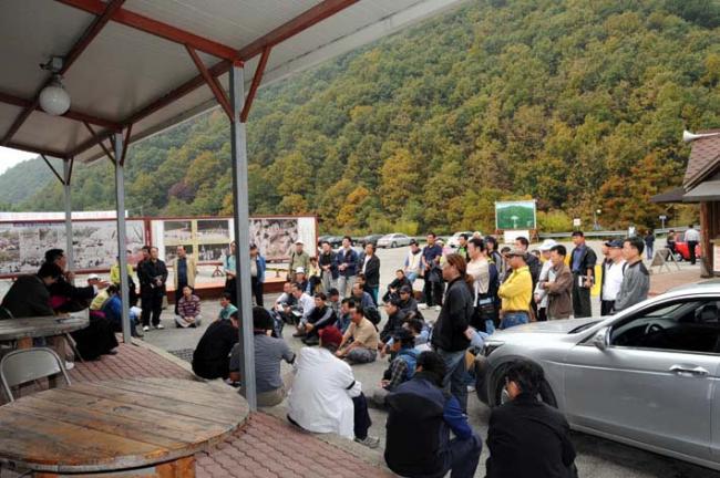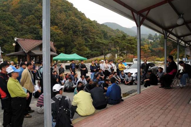 변기영 몬시뇰께서 수원 오전동성당(90명) 순례단에게 안내소 앞에서 강의(08.10.19. 일)