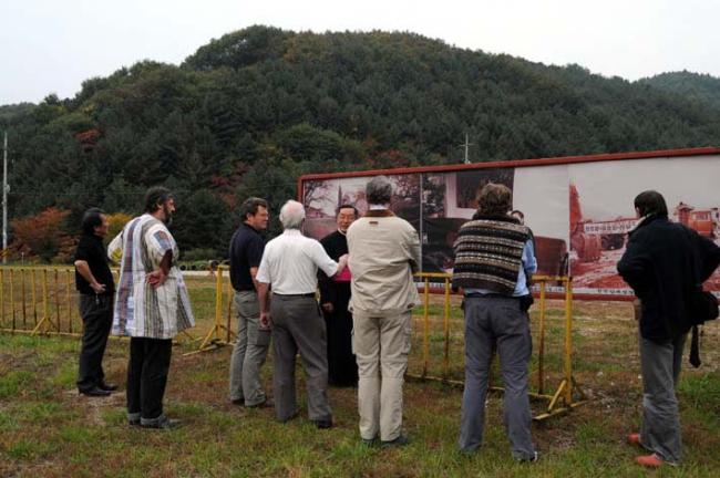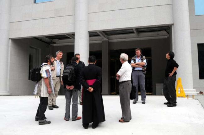 서울 문정동 성당 김홍진 신부님과 불란서 신부님 6명이 성지순례시 박물관 내부에서 변기영 몬시뇰이 벽공사 설명(08.10.21)