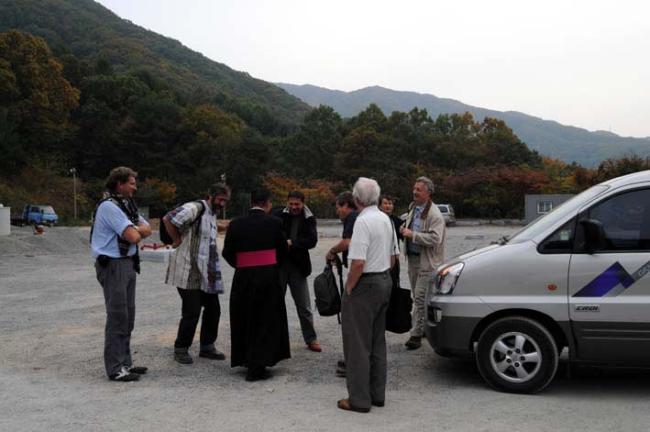 서울 문정동 성당 김홍진 신부님과 불란서 신부님 6명이 성지순례시 박물관에 도착 (08.10.21)