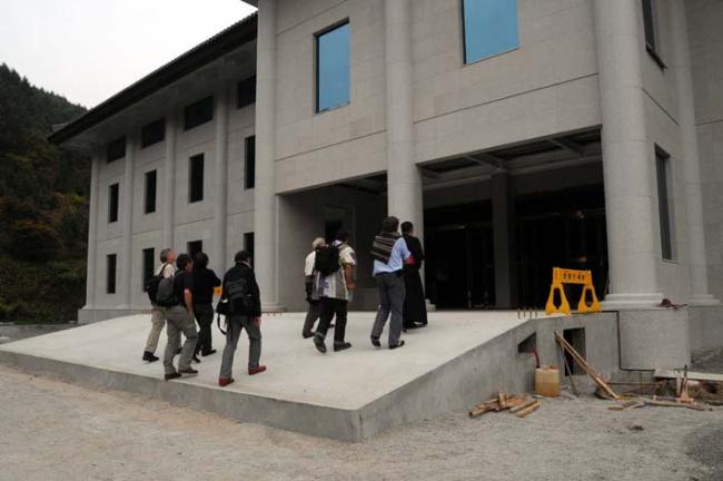 변기영 몬시뇰께서 박물관 지붕에 대한 설명(서울 문정동 성당 김홍진 신부님과 불란서 신부님 6명이 성지순례, 08.10.21)