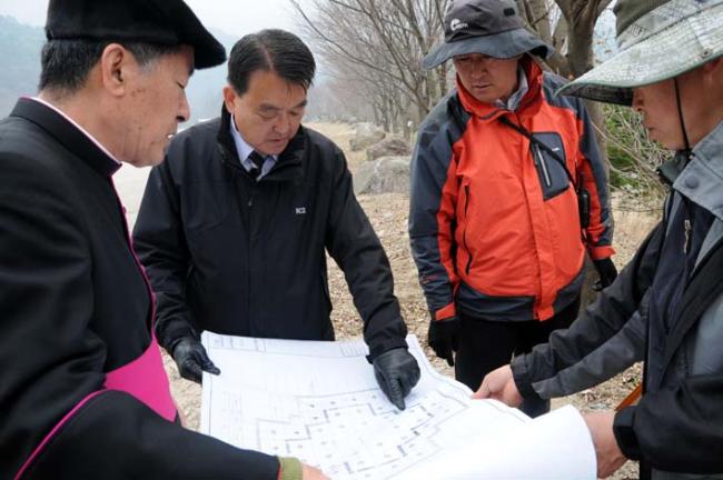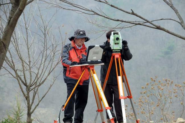 천진암대성당터 기둥자리 표시하기 위한 재확인 측량(2012.04.10)
